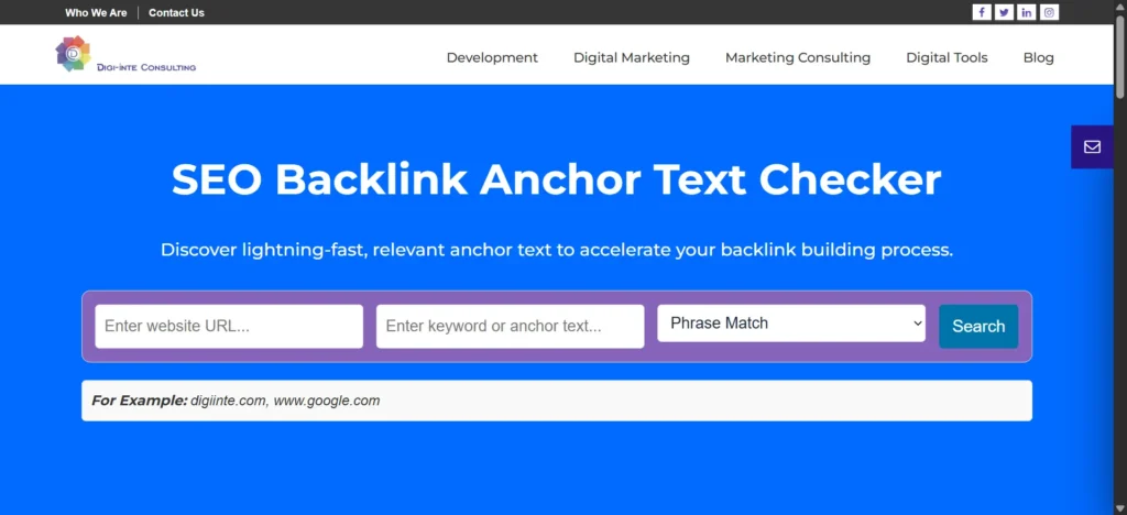 <a href=”https://digiinte.com/anchor-text-checker”>anchor text checker tool</a> The clickable words anchor text checker tool are the anchor text.